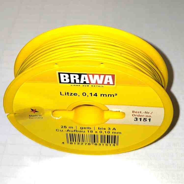 Brawa 3151 Aansluitdraad 25 m. Litze 0,14mm2 geel