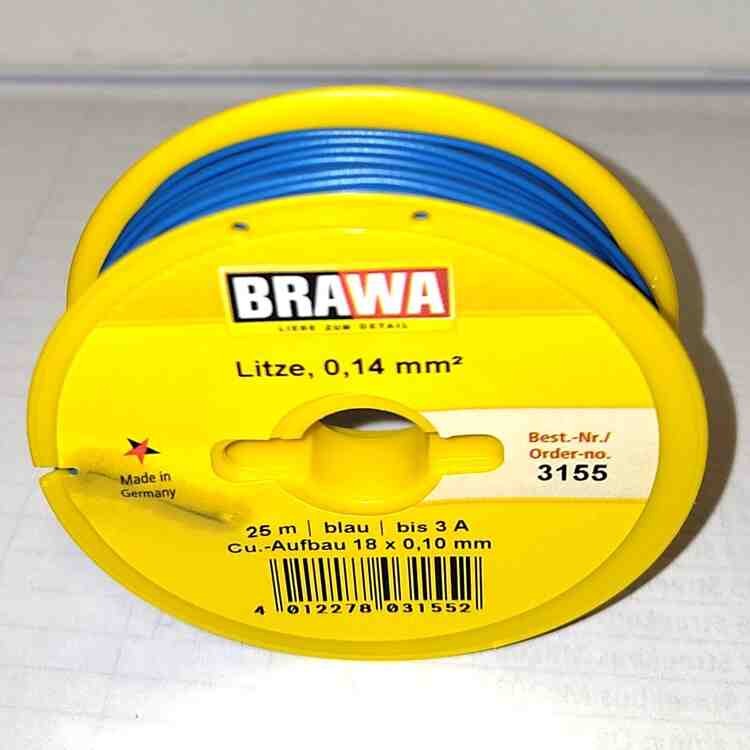 Brawa 3155 Aansluitdraad 25 m. Litze 0,14mm2 blauw