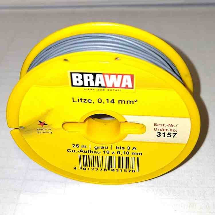 Brawa 3157 Aansluitdraad 25 m. Litze 0,14mm2 grijs