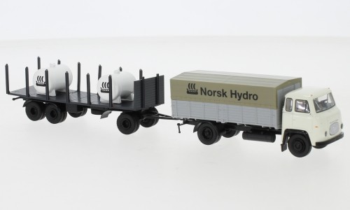 Brekina 85055 Scania LB 76 mit Rungenanhänger "Norsk Hydro"