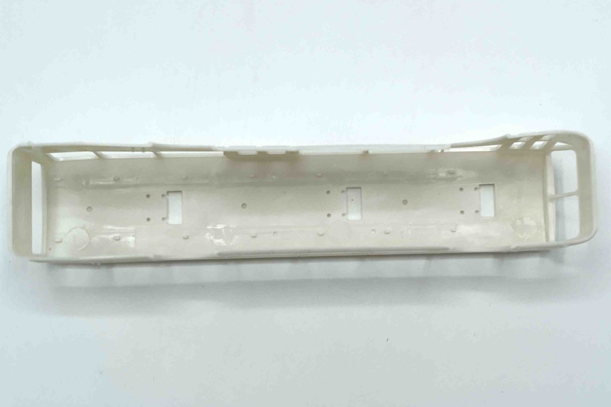 Door de dunne wanden en het ontbreken van interne ondersteuning buigen de zijwanden in het midden iets naar binnen. Dit is geen productiefout en komt bij alle kits voor. Zodra het vrij massieve interieurdeel wordt geplaatst en vastgeklikt, krijgt de carrosserie vanzelf weer de juiste vorm.