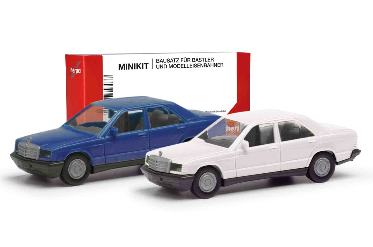 Herpa 012409-009 Mercedes Benz 190E, wit / blauw (Minikit 2 st.), bouwpakket