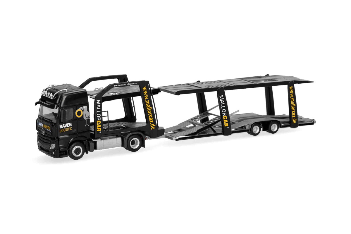 Herpa 321372 Mercedes Benz Actros L 18 G. autotransporter Raven Logistic