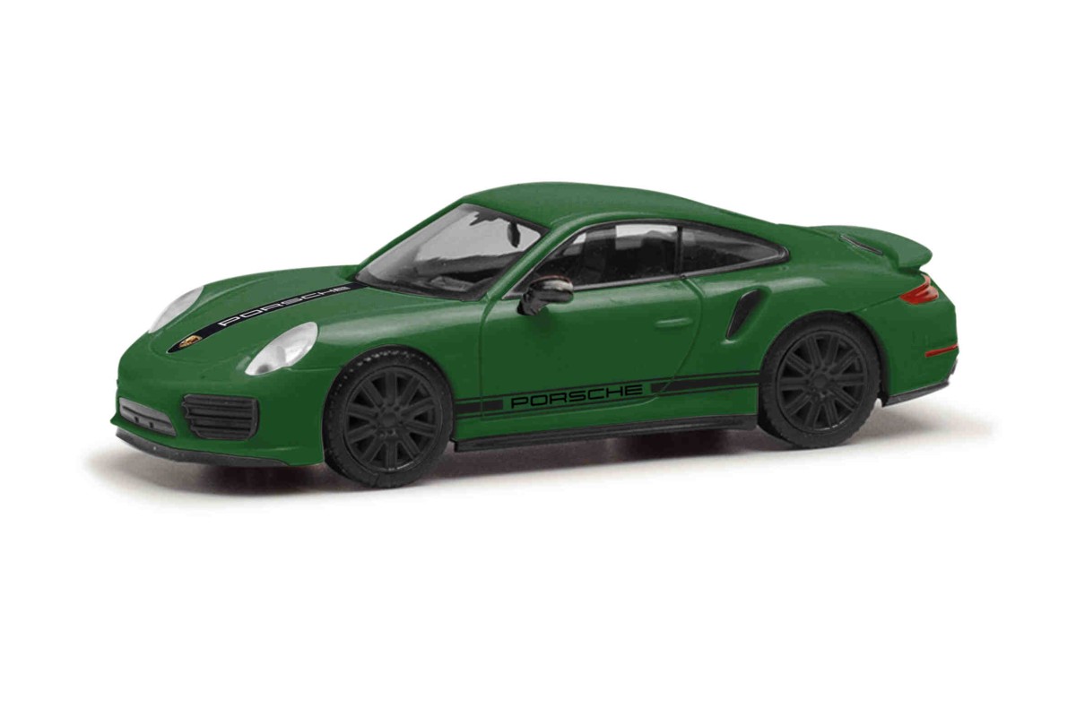 Herpa 420358 Porsche 911 (991) Turbo, groen (British racing green)