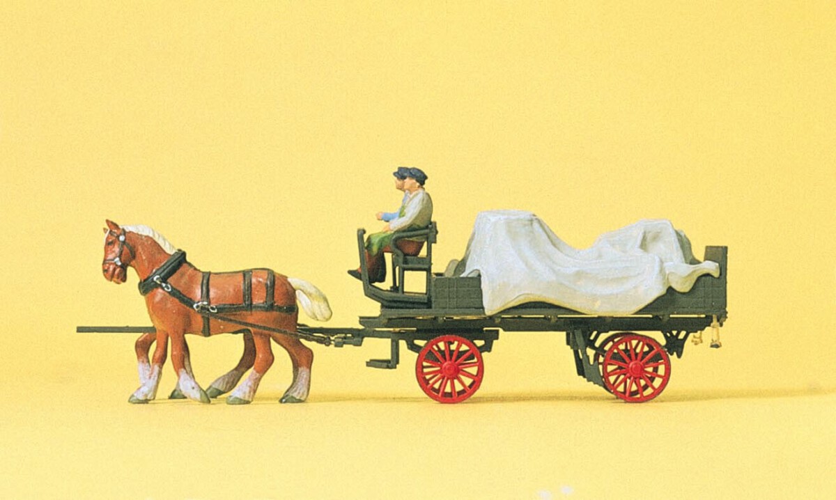 Preiser 30446 Lieferwagen mit Plane - Paard en wagen