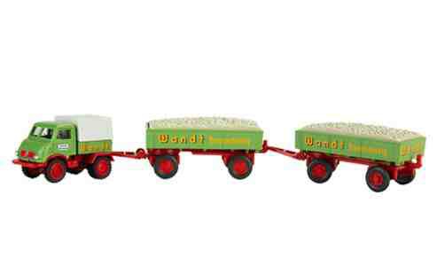 Wiking PMS 250658 Edition Gerhardt Wandt Nr. 3, MB Unimog 402, zwei Anhänger und Kiesladung