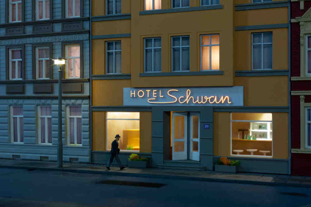LED-Beleuchtung Hotel Schwan. Bausatz. Erfahrung im Löten und Kenntnisse im Umgang mit elektronischen Bauelementen erforderlich! Funktionsfähige Leuchtreklame, welche in unsere Gebäude 11 471 und 11 472 (weitere in Vorbereitung) eingebaut werden kann. Mit bastlerischem Geschick auch in anderen Gebäudemodellen einsetzbar. Spannungsversorgung über USB-Anschluss.