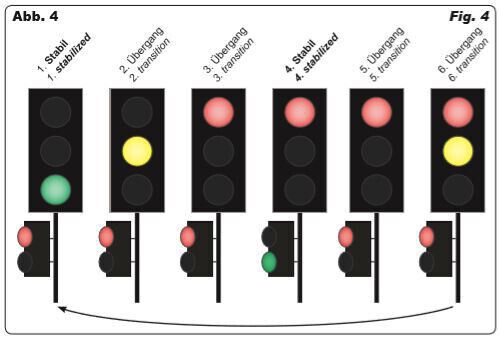 Minder geschikt voor Nederlandse banen, omdat voordat het groene licht gaat branden eerst het gele licht tegelijk met het rode brandt.