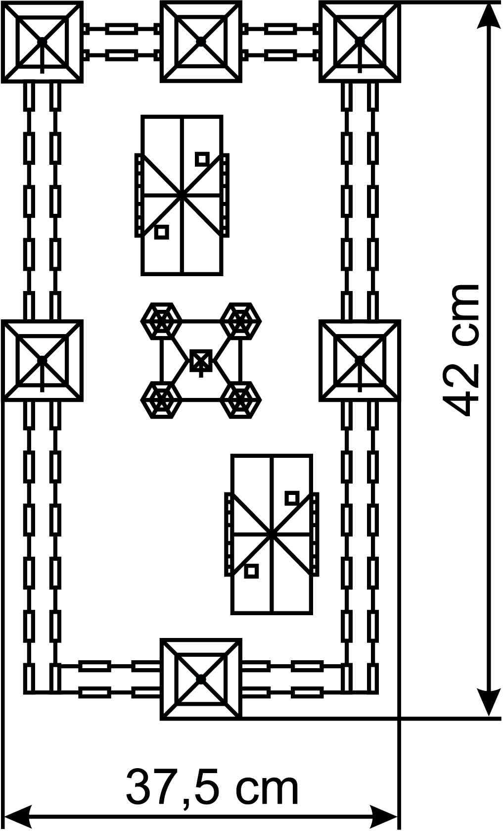 Afmetingen: L 56 x B 31 x H 37 cm.