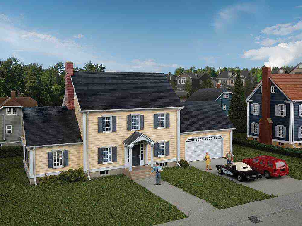 De kenmerkende toevoeging aan een modieuze onderverdeling van de stad, de Executive House-kit van Cornerstone(R), zal zeker een favoriet worden op elke HO-lay-out! Typerend voor grote huizen die in het naoorlogse tijdperk zijn gebouwd en nog steeds worden bewoond, beschikt de structuur over: